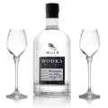 Wódka ziemniaczana Miler Spirits 42% z rozlewu “Listopad 2023” o pojemności 0,7L w zestawie z dwoma kieliszkami 60 ml.